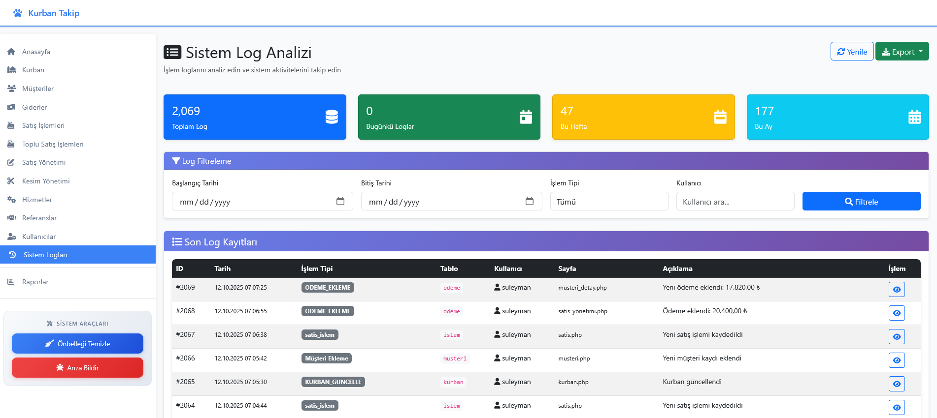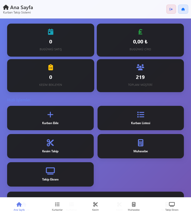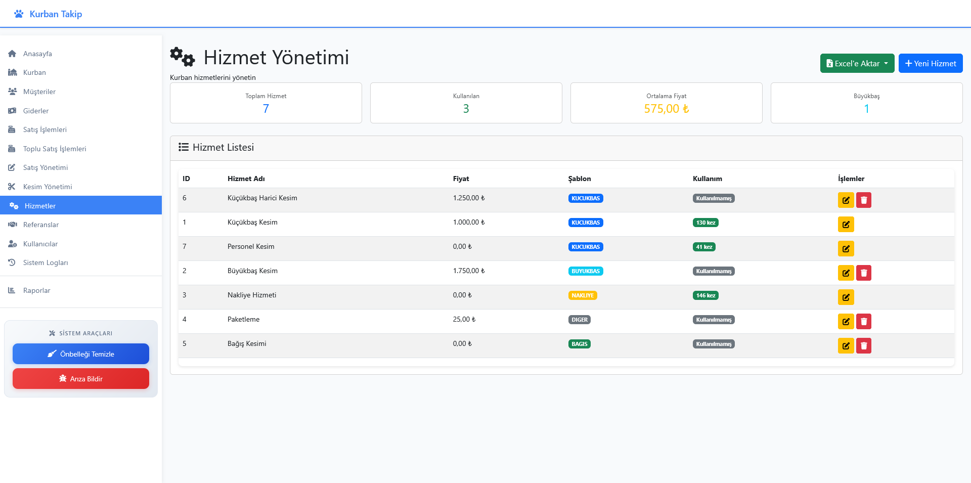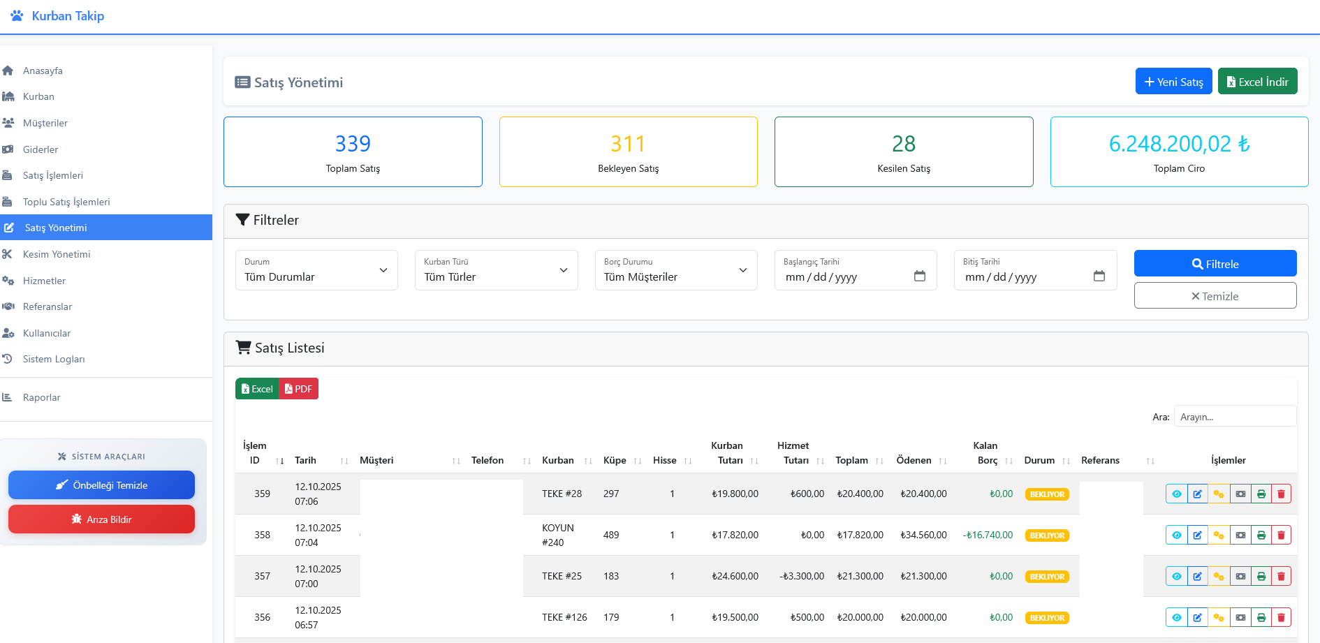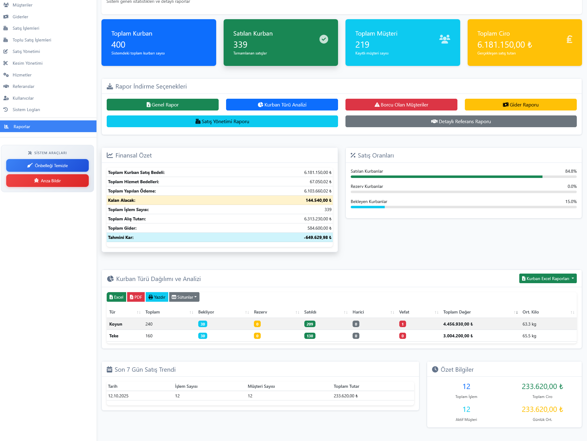 Tüm kurbanlarınızı tek platformda yönetin, stok kontrolü sağlayın.
