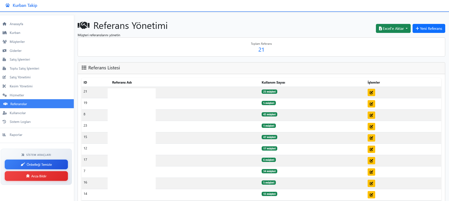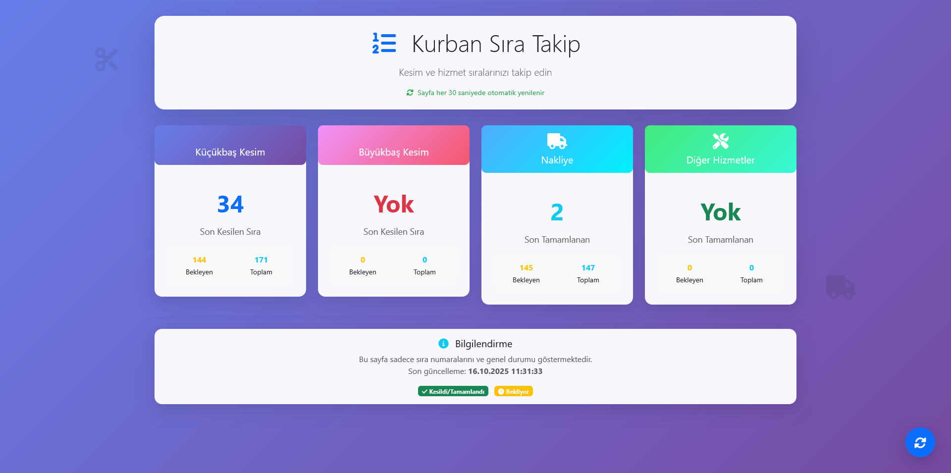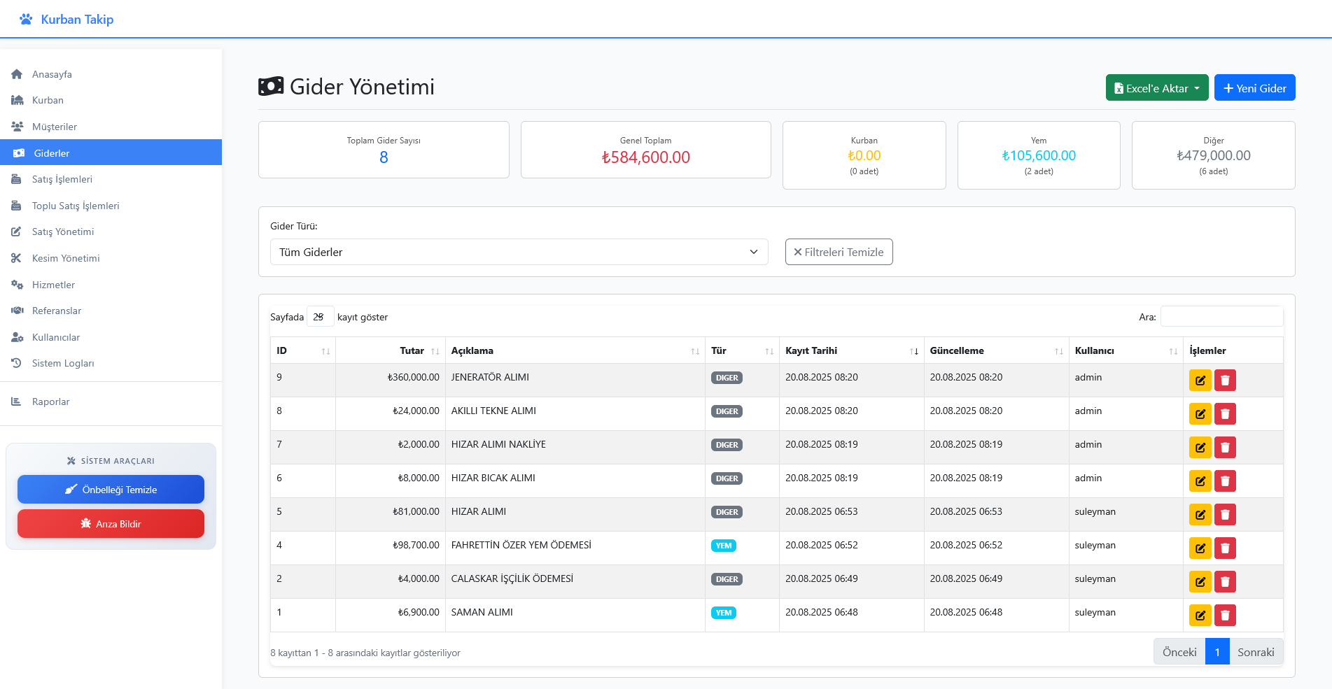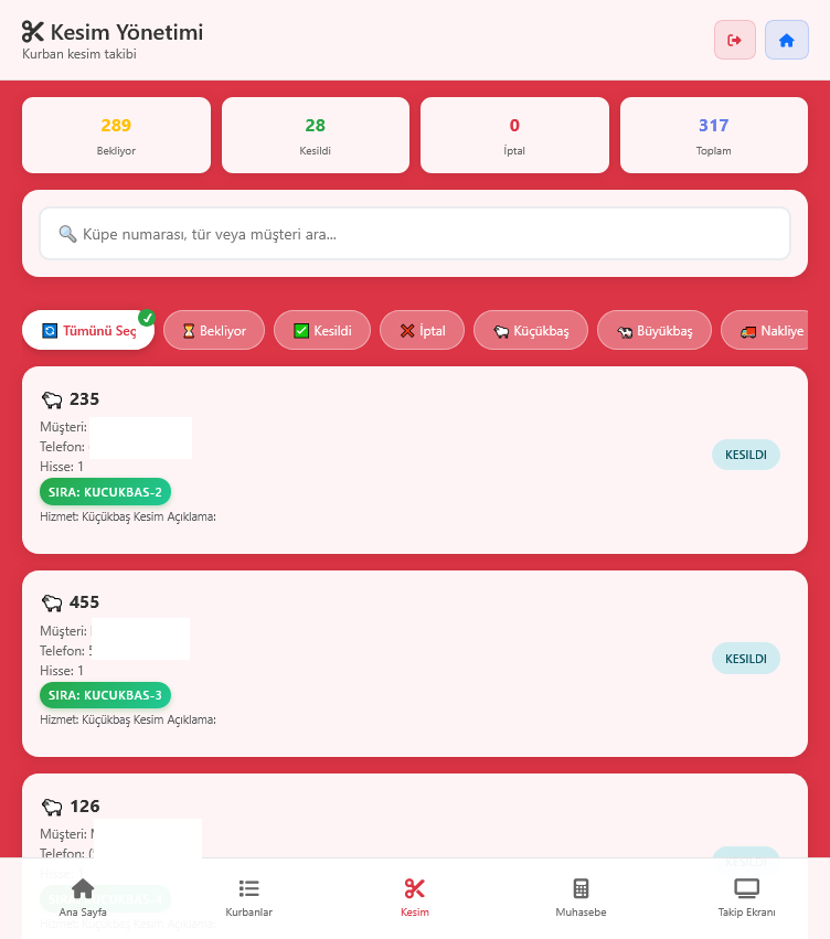 Tüm kurbanlarınızı tek platformda yönetin, stok kontrolü sağlayın.